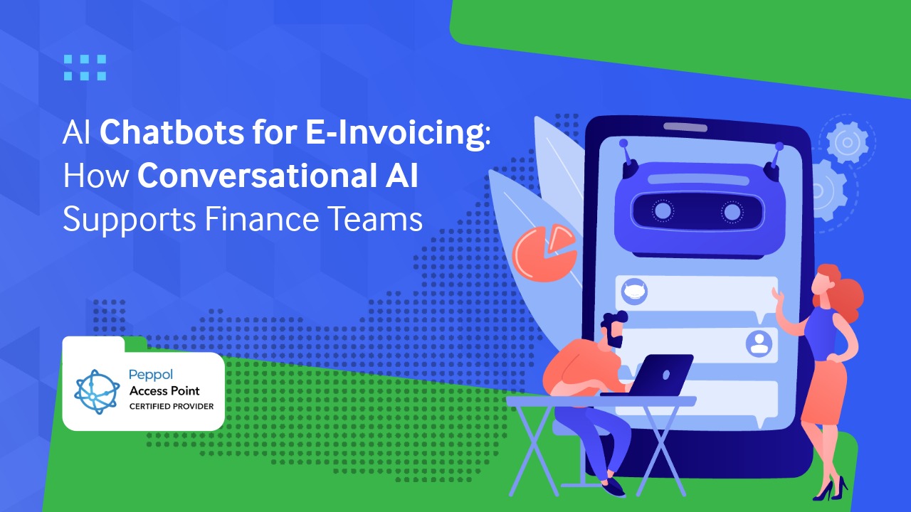 Conversational AI in e-invoicing refers to chatbot technology that interacts with finance teams through natural language, helping them manage invoices, answer queries, and automate tasks within the e-invoicing system.